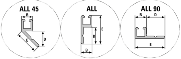 Профили h, F и 45° изготовлены из алюминиевого сплава с последующим анодированием. Используются для наружного и внутреннего применения.